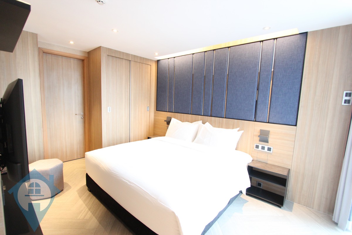 This brand new high-rise complex is located near Norodom Boulevard in the leafy suburb of Tonle Bassac. The apartment features a modern open living area that has a contemporary galley style kitchen attached. There are a total of three bedrooms, each of which is flooded with natural light from the floor to ceiling windows. There is a private balcony off the master bedroom that provides sweeping views of the Phnom Penh skyline. The property comes fully serviced and features a cafe and meeting room on the mezzanine level and a rooftop gymnasium and swimming pool. Please Quote Property Code : PRE000769