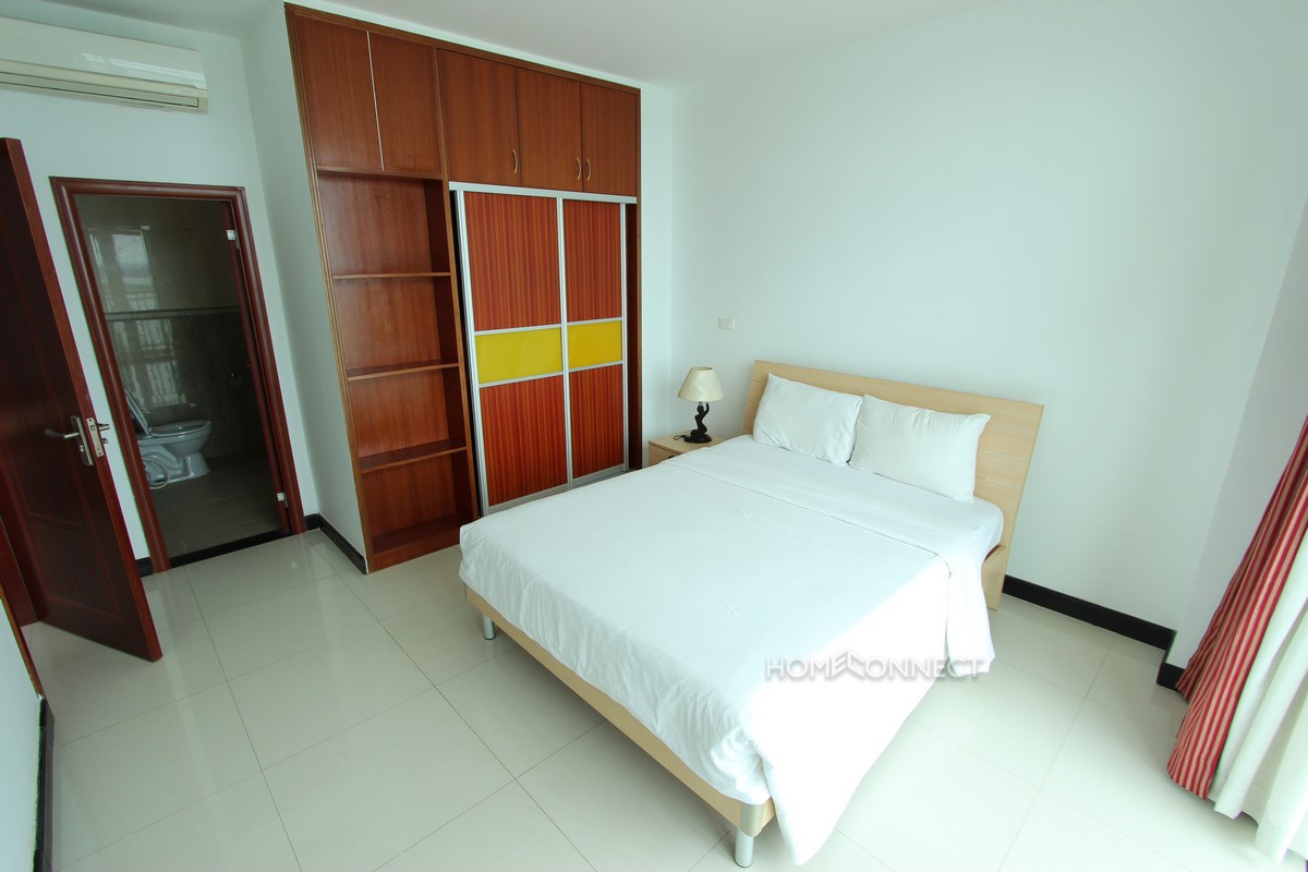 This large 3 bedroom apartment is located in a recently constructed condominium development in the area of Chroy Chongva, to the northeast of central Phnom Penh. The apartment comes fully furnished with all modern conveniences and is fully serviced with a 24-hour reception area. The apartment features three large bedrooms, with the master bedroom featuring an en-suite and a private balcony. The contemporary kitchen comes fully equipped and the attached living area opens out to a large balcony that affords amazing views of the Mekong River. Property Code : PC000064