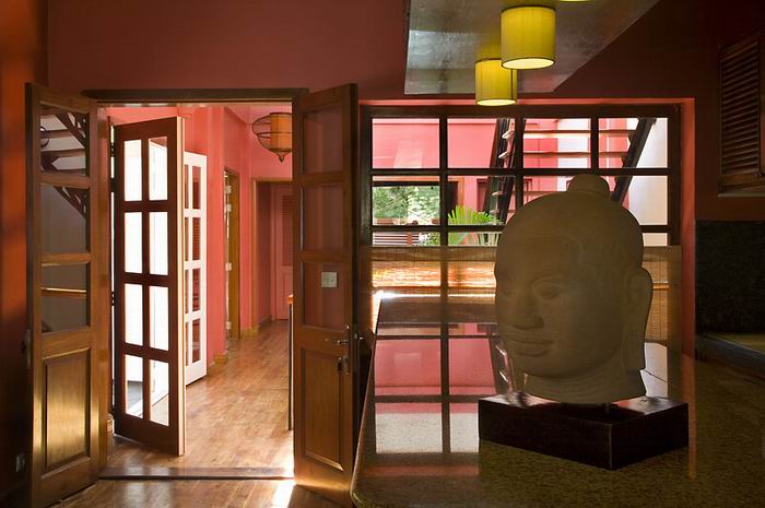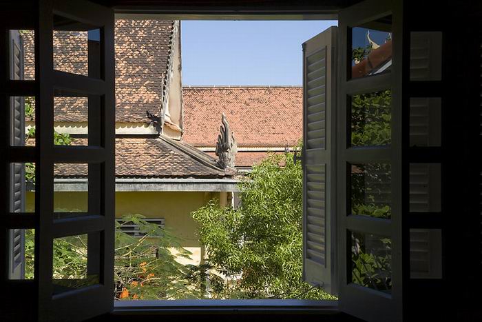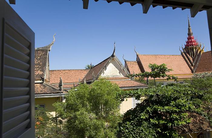 Designed by an interior architect, this French colonial style villa occupies 400 m2 near the famous Royal Palace. Its layout delivers an open and bright space with 5 bedrooms, 5 bathrooms, 3 terraces and 1 swimming pool. The indoor and outdoor swimming pool stretches on the ground floor where there is also a living room with a garden, an open kitchen facing a terrace, two bathrooms, 2 private car parks and a storage room. The first floor house a sunny living/dining-room with a pleasant patio and a superb master bedroom with an open bathroom. On the second floor, the four bedrooms overlook a terrace, two beautiful bathrooms and a room that can serve as office complete the space. Nothing better than a visit to appreciate all the advantages of this wonderful and rare property! Please mention code N° 58 Contact by email : English or French Contact by sms : English or French or khmer