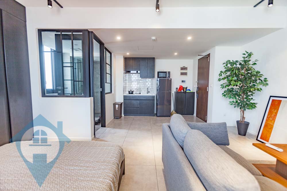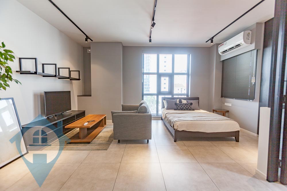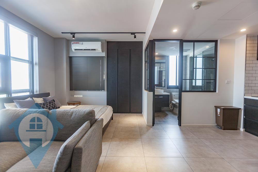 This studio apartment for sale is located in the centre of the popular BKK1 district in Phnom Penh. The apartment comes fully furnished and fully serviced. The design is modern Japanese and the unit is both bright and airy. The building benefits from a meeting room, lounge area, secure parking for cars and motos, well equipped gym and a large swimming pool. This apartment has a hard strata title. Please quote property code : PRE001829