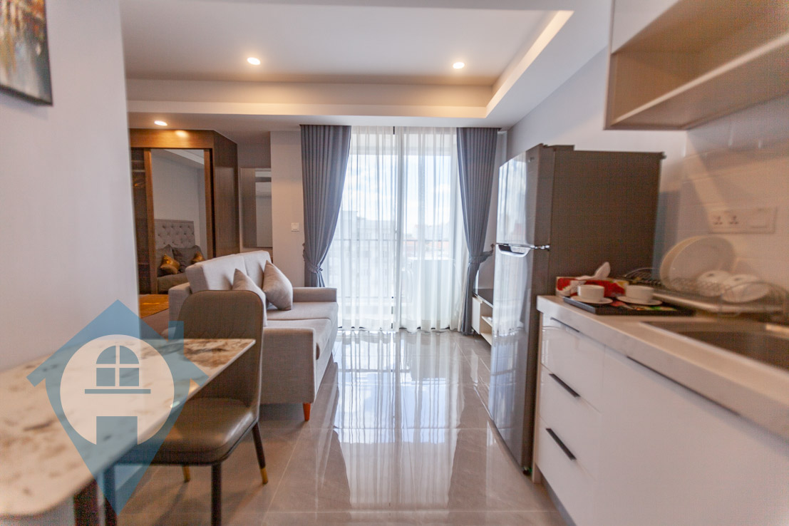This studio room apartment for sale is located in the central district of Boeung Trabek in Phnom Penh. The unit comes fully furnished and fully serviced. There is a private balcony and has a studio room and one bathroom. The building benefits from secure parking for cars and motos, rooftop swimming pool, gym, skybar, outside meeting area. We have units on various floors and this property comes with a hard strata title. Please quote property code : PRE001869