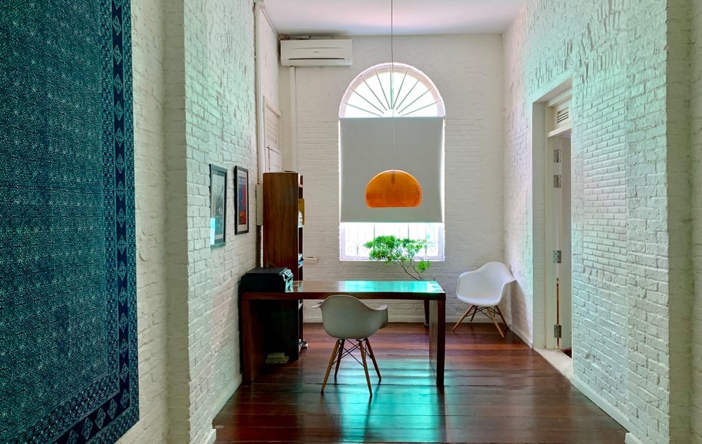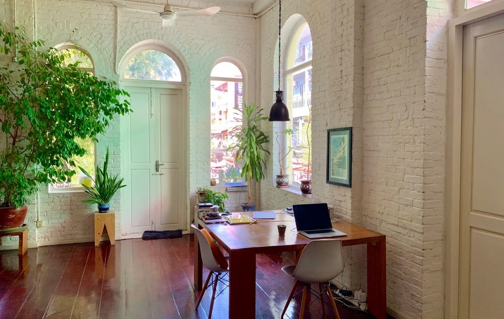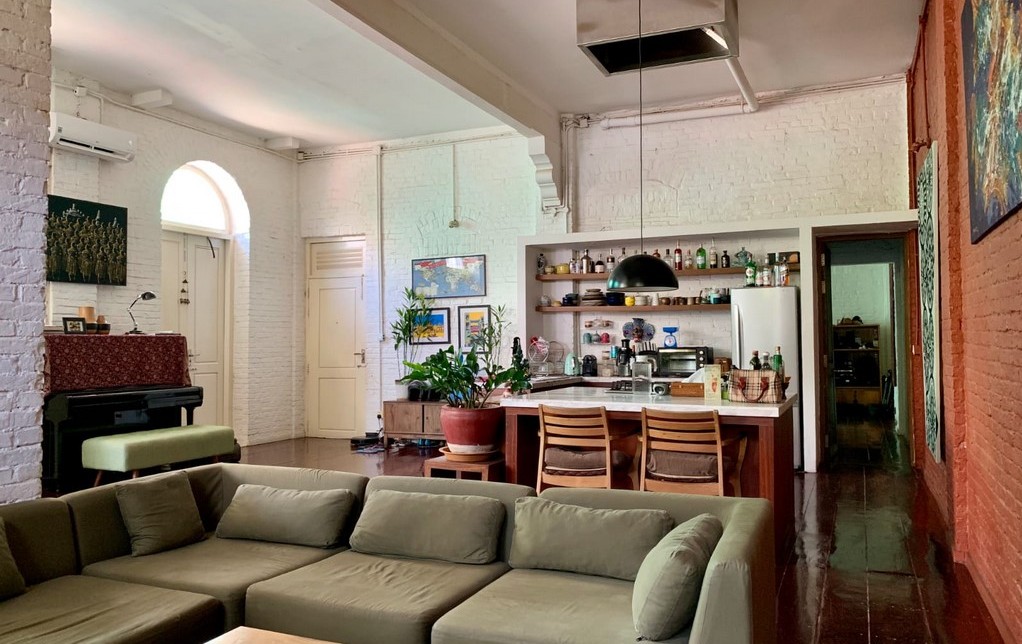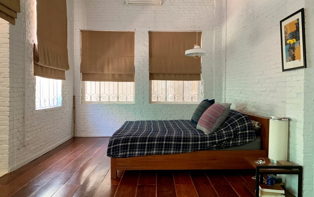 This is a heritage building from colonial era, one of the few remaining in Phnom penh Clean, safe, private entry stairway shared only with one neighbor Second floor : full floor apartment of 184 sqm, 2 large bedrooms, huge living/dining area, an open design kitchen, high windows on three sides of the apartment and high ceiling of 3.50m Price includes wifi, cable for tv, cleaning: once a week possibility to park in the front of the building One block from riverside Please mention code N° 057 Contact by email and text: English or French Contact by phone : khmer