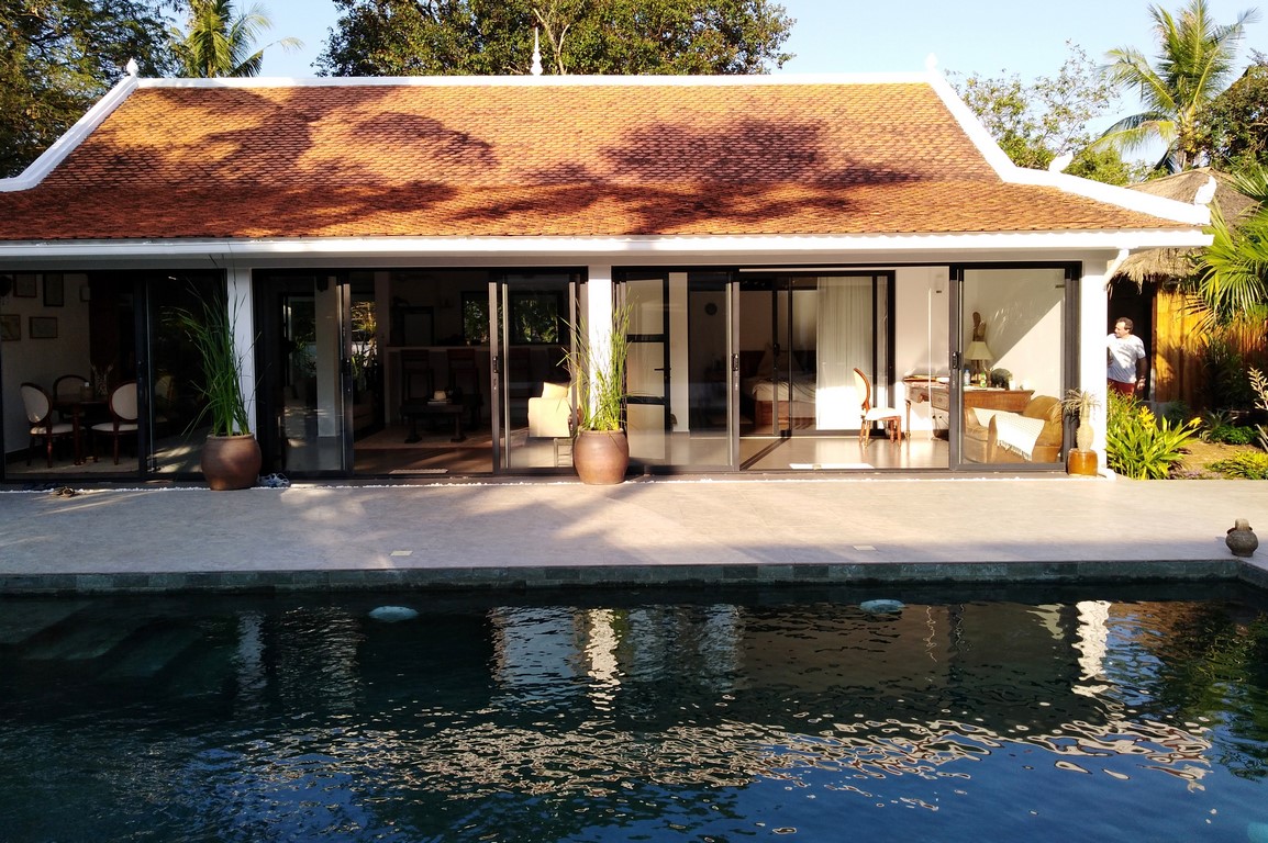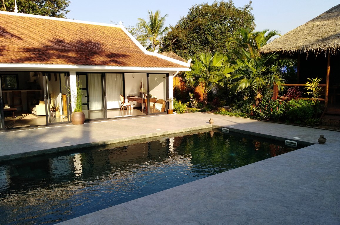 10 minutes from the sea, the whole property offers, a main villa with a large living room, an open kitchen, 1 bedroom and ensuite bathroom, large guest house with all the comfort, 2 bedrooms with ensuite bathroom. The two villas have a direct view on the swimming pool. The land of 2039 sqm has a fabulous garden, designed by a landscape artist, with large varieties of tropical plants. Inspired by A Balinese concept, the property is a real cocooning. Main Villa: 13 m x 14 m (182 m²), living room, kitchen, 1 bedroom and a bathroom Guesthouse 13 m x 12 m (156 m²) 2 bedrooms and 2 bathrooms Price includes the furniture Please mention code N° A0212 Contact by email : English or French Contact by whatsapp or viber : English or French