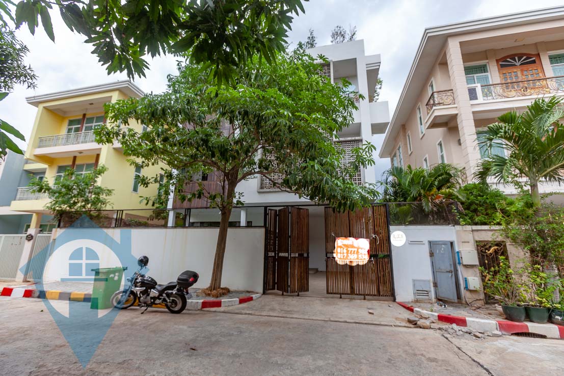 This spacious six bedroom villa for rent is located on the popular Diamond island in central Phnom Penh. The villa is spread over three floors with six bedrooms and seven bathrooms. The villa benefits from a large ground floor living / dining / kitchen area leading onto a private swimming pool. Each floor has a living area and private balconies plus a vast rooftop area. The villa is in a secure compound and has private secure parking for two cars . The location is close to several malls and international schools. Please quote property code : PRE001847