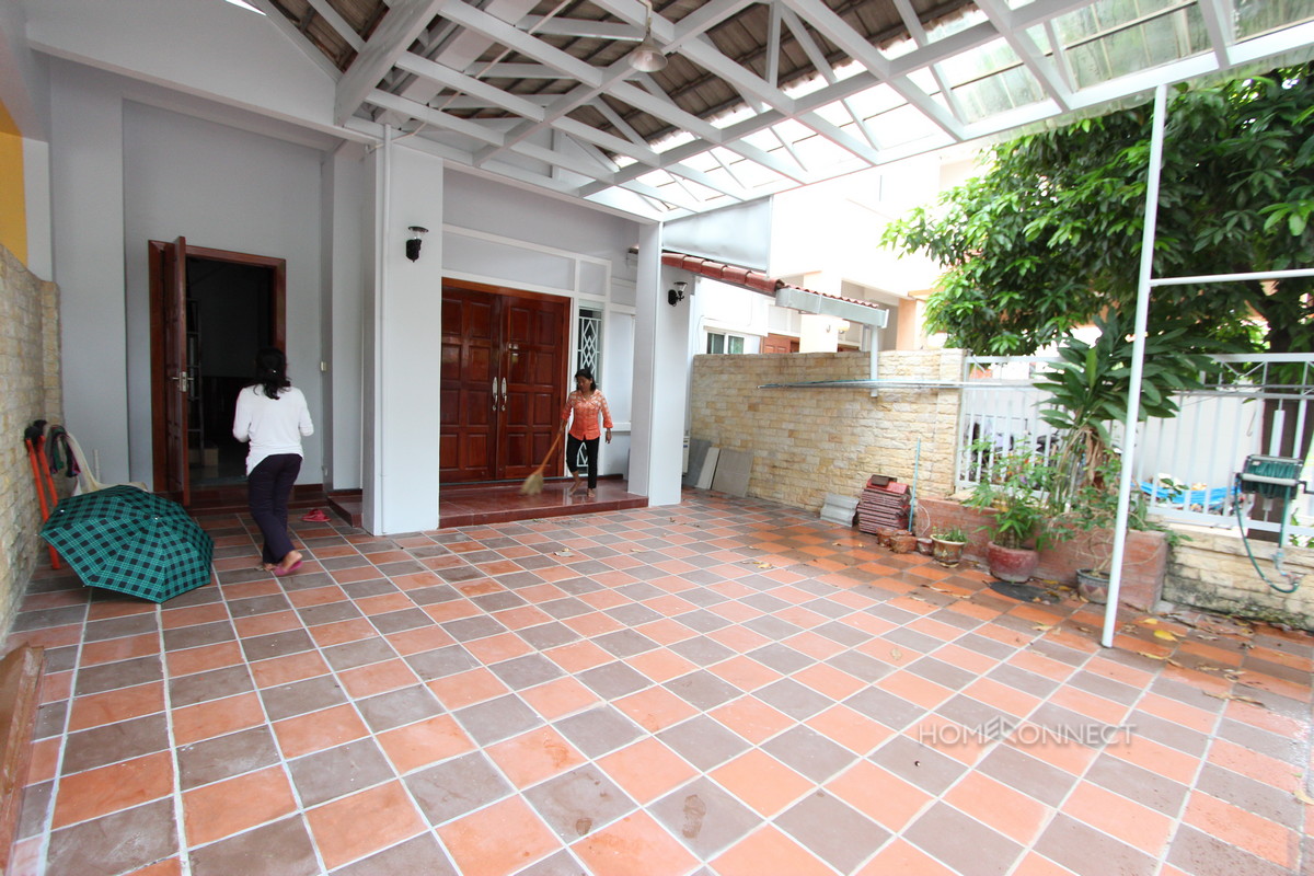 This four bedroom townhouse for rent in located beside Aeon Mall in the ever popular Tonle Bassac area of Phnom Penh. The property comes with four good sized bedrooms all with en-suites and a large living / dining area and a private courtyard to the front. The property has been well maintained and is finished in the western style. The development has a communal pool, gym and spa plus is within walking distance of a super market. The property comes with 24 hour security and secure parking. Property Code : PRE000525