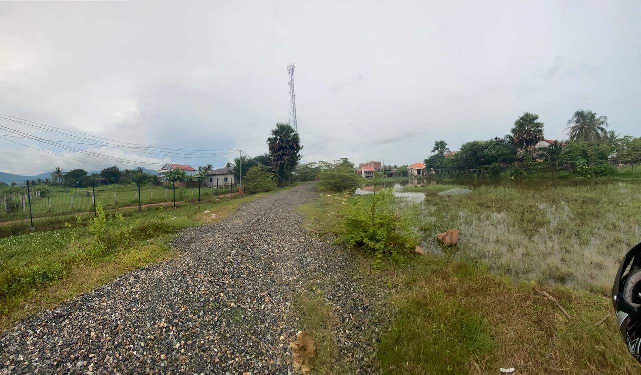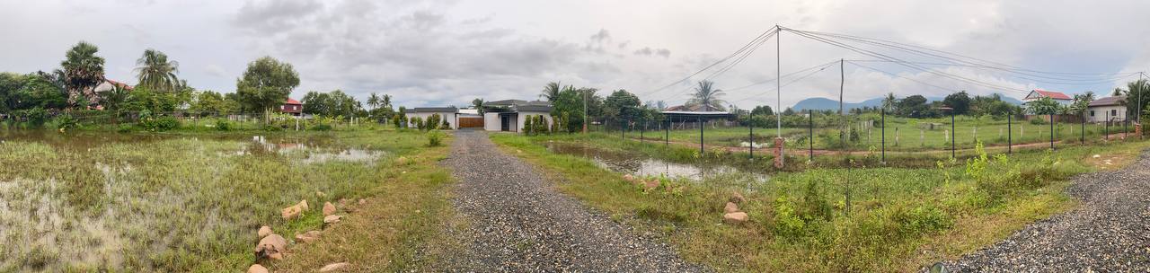 This site for sale in Kampot contains two villas already constructed 2.5 km from the town near the International village. The main villa has two bedrooms and two bathrooms with a potential monthly rental of $450 per month, an open plan living / dinning and kitchen area leading onto an internal courtyard. The second smaller villa has one bedrooms and one bathroom with a potential monthly rental of $250 per month and also has an open plan living / dinning and kitchen area leading onto an internal courtyard. Both properties comes fully furnished. The hard title site is 3450 sqm and has the potential to building several more villas to rent or sell by subdividing the site. This site has both residential and commercial possibilities. The owner will fill the remaining site prior to title transfer Please quote property code : PRE001757