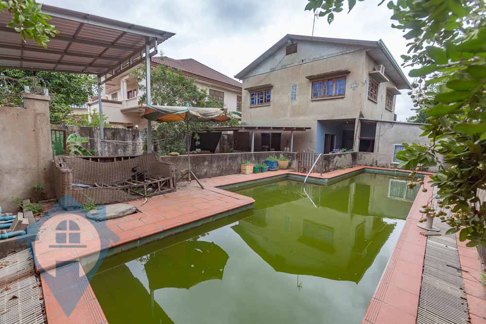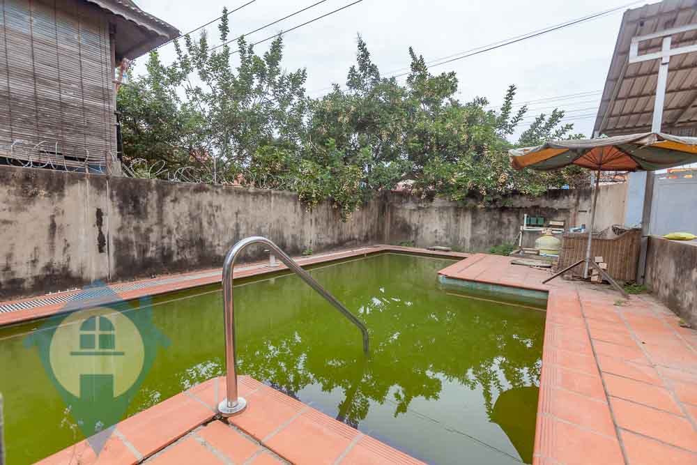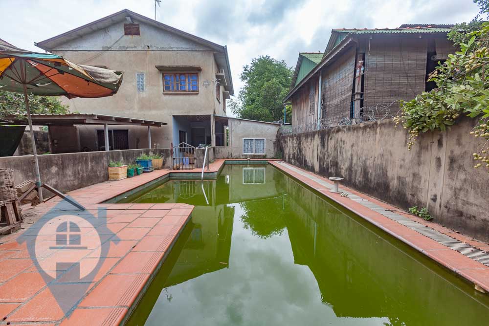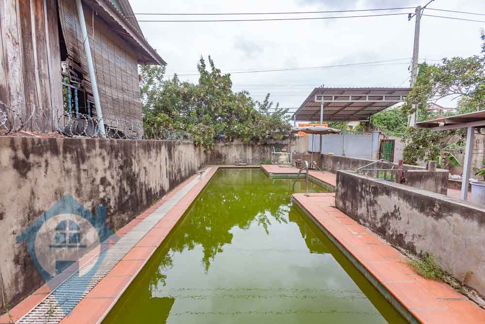 This villa for sale in located in the southern town of Ta Khmau close to Phnom Penh. The villa comes with three bedrooms and three bathrooms and various outside sheds. The site is large at 750 sqm ( 15m x 50m ) and comes with river frontage. The property also has a swimming pool and is well enclosed by a perimeter wall. With Hun Sen boulevard now complete and the new airport being opened in 2025 the location is set to increase in value. Please quote property code : PRE002004