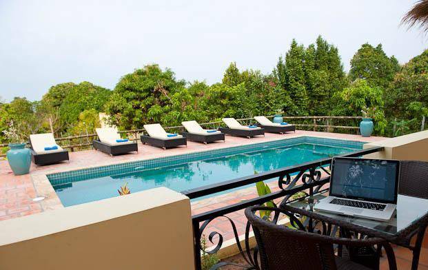 View on the hills and the sea, this villa offers 5 large bedrooms (50 sqm each), 2 bedrooms overlooking the garden and the swimming pool, large terrace with a welcoming living room. This property is fully equipped. Villa size 330 sqm Good value for money for land size of 1480 sqm, possibility to build another villa. Please mention code N° A213 Contact by email and text: English or French Contact by phone : khmer