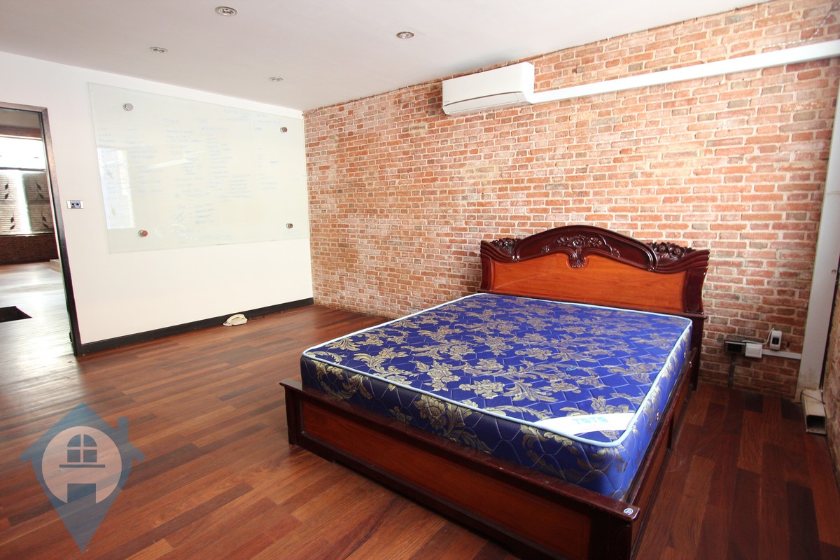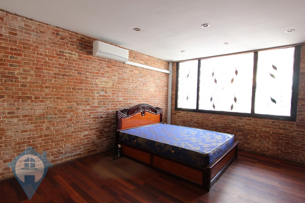 This western style two bedroom loft apartment for rent is located on street 19 in the ever popular Daun Penh district of Phnom Penh. The apartment is currently unfurnished yet the owner if willing to negotiate on the addition of furniture. The property has two bedroom and one bathroom and a private outdoor terrace. This space can be used either as an office or a home. The tall ceilings and exposed brick make this a rare find in Phnom Penh. Please quote property code : PRE001004