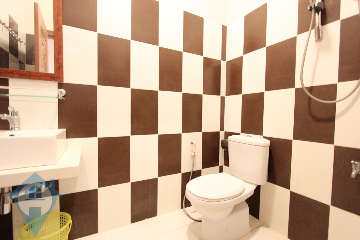 This western style one bedroom apartment for rent is located close to the famous National Museum near Riverside in Phnom Penh. The unit is bright and airy with lots of natural light and has a good sized balcony. There is a large bedroom and two bathrooms plus a western style kitchen. Moto parking is available close to the building. Please Quote Property Code : PRE000781