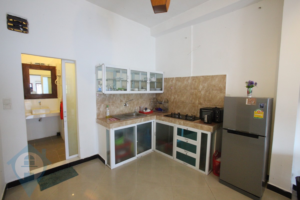 This western style two bedroom apartment for rent is located within walking distance of the landmark Riverside in Phnom Penh. The apartment is bright and airy and comes fully equipped and furnished. There are two good sized bedroom and one bathroom. This apartment comes with a balcony and communal parking for motos is close by. Please quote property code : PRE001116