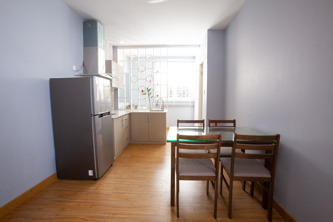 This western style two bedroom apartment for rent is located close to the landmark Wat Phnom in the north of the capital Phnom Penh. The apartment is on the 4th floor. The property is decorated in a western style and is both bright and airy. There is a private balcony off the master bedroom. Please quote property code : PRE001416